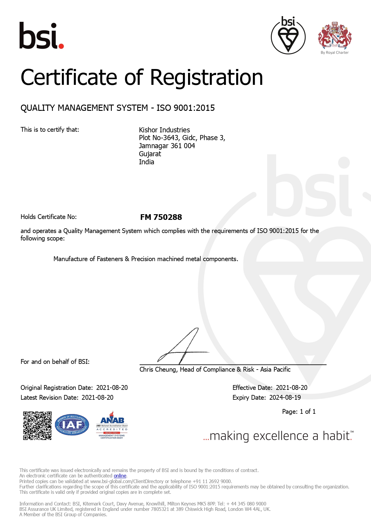 Kishor Industries is committed to supply Fasteners and Precision turned parts that fully persuade customer’s requirements. Our mission is to be a leader in providing world-class manufacturing solutions, based around our core competencies in fasteners and precision turning to the various regulated industries we serve.